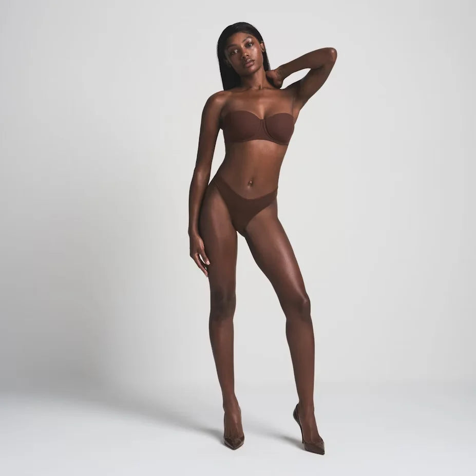 A buttery-soft strapless solution with a second-skin fit and hidden cushion underwire that supports and shapes your bust but never digs into your skin. Features removable, adjustable straps that can be worn multiple ways, silicone tape along the 2-ply wings to keep it in place, and a hook and eye back closure. Fits true to your SKIMS bra size.