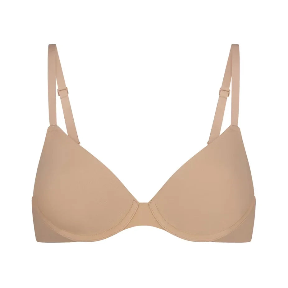 The t-shirt bra that started it all. This classic foundation with demi coverage has 360-stretch technology for a custom-made fit even when you’re between sizes. Made of our signature buttery-soft fabric with a second-skin feel that makes you forget you’re wearing a bra. Offers unparalleled support with its lightly lined cups and flexible underwire that doesn’t dig. Features adjustable straps and a hook and eye closure in the back. Fits true to your SKIMS bra size.